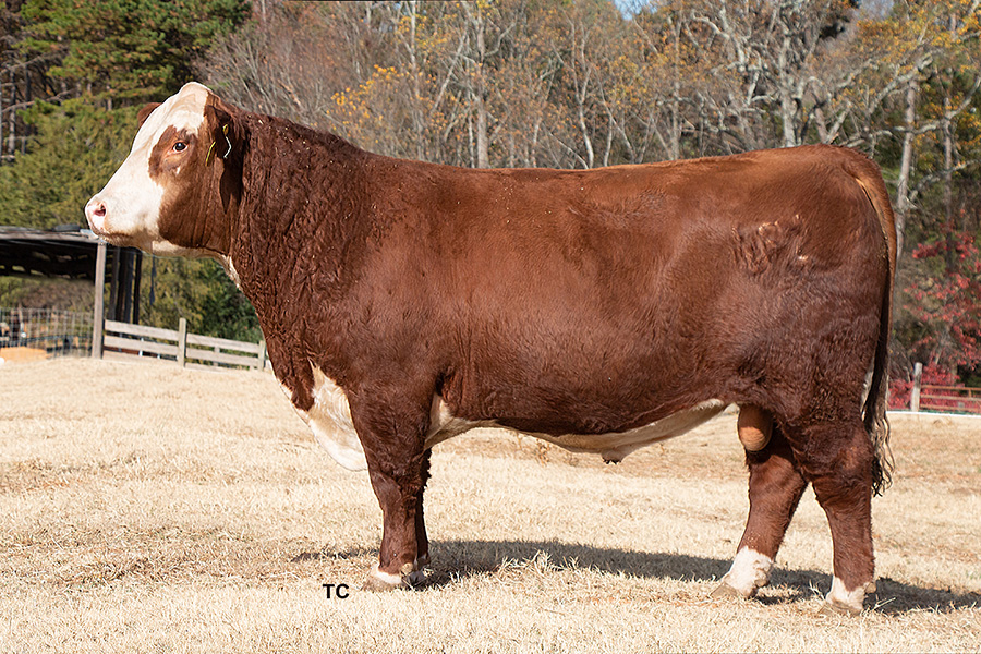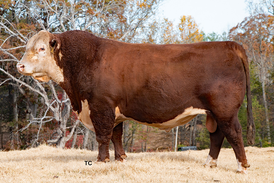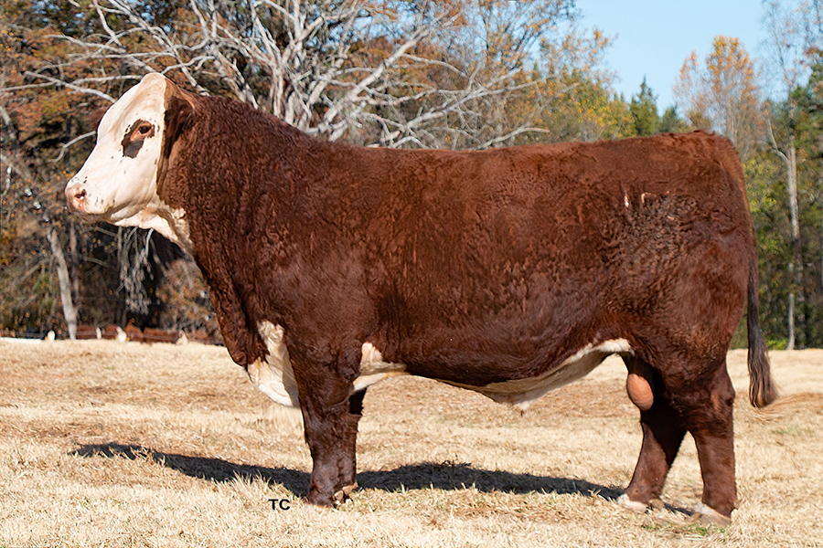 Most of the bull selections that we have used in putting together the nucleus of our herd have been blends between maternal-based and performance-based cattle. Foundation sires, for example, include bulls such as Victor 735 crossed with strong doses of X51, R117, and the legendary 909B. As our herd has grown, other sires such as 4013, 33Z and Mandate have been used heavily. In 2022, we also added the genetics of Character 178J, from the Ned and Jan Ward herd in MT. This highest selling bull for 2022 brings to the table performance, growth, and carcass quality along with strong maternal traits and uniformity as he is double bred to Rita 79Z.
